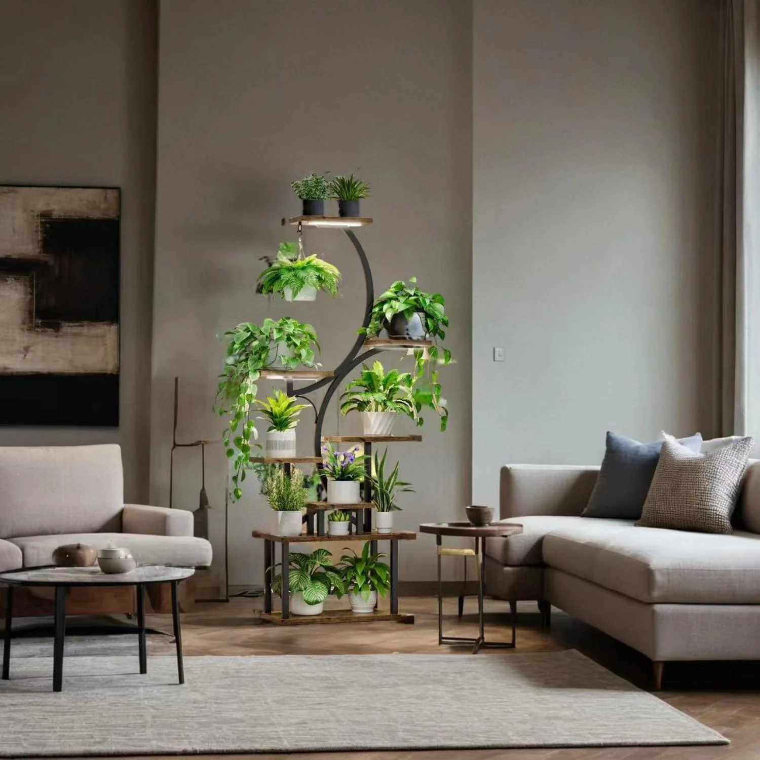 - Space-Saving Vertical Design: 62" tall S-shaped stand with 8 tiers and a hanging hook maximizes vertical space while accommodating various plant sizes, ideal for small apartments or indoor gardens.